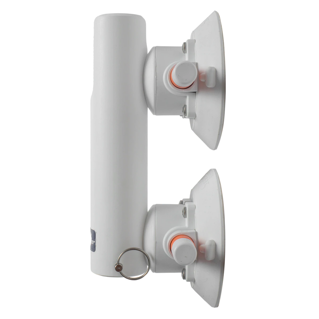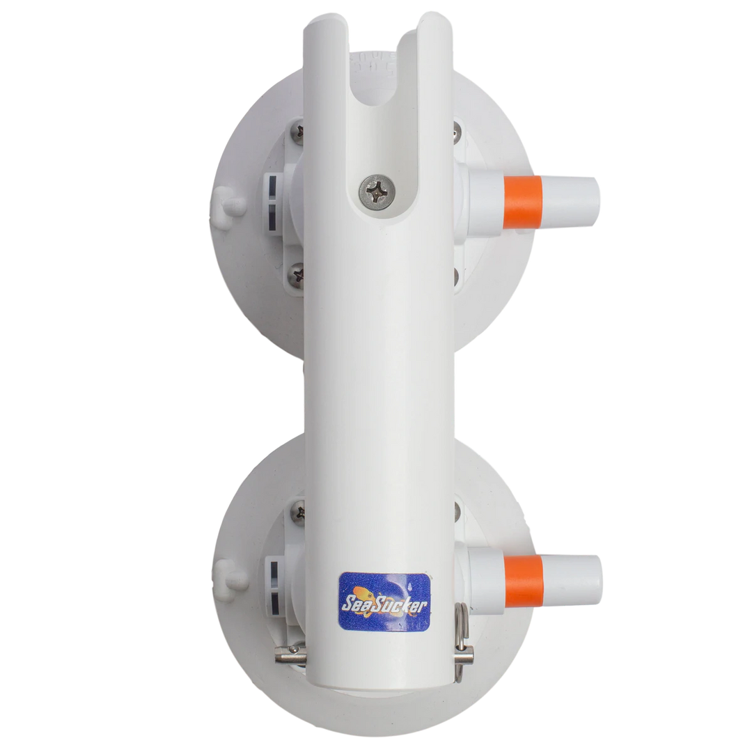 Like all SeaSucker products, the Heavy Duty Rod Holder uses to power of the SeaSucker vacuum mount to make a rock-solid connection with your boat. With two of our 120lb pull-strength rated 4.5” SeaSuckers, this one is even stronger. Like our excellent Pro Series rod holders, this unit has a removable pin in the bottom of the precision-machined PVC rod tube: take the pin out to accommodate long-butt spinning rods or leave it in to handle conventional rods with gimbaled rod butts.