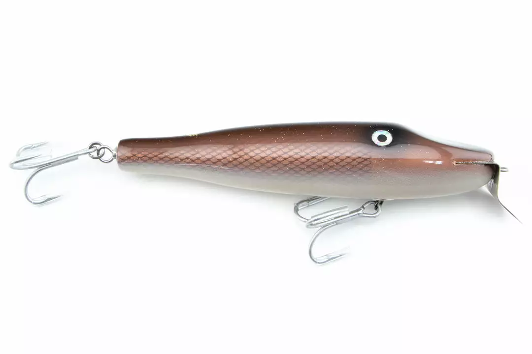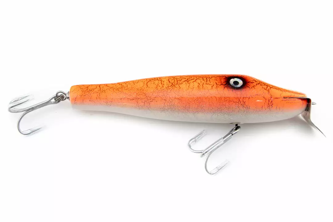 Afterhours custom plugs are hand-crafted by Don Guimelli in Rhode Island. The finish work, and fishability of his hand made wooden lures are second-to-none. We are the exclusive dealer in New York state for these beautiful custom plugs. The Pikie Senior is a 7 inch, 3oz. metal-lip swimmer. This style of plug is designed to be both a surface swimmer, as well as a diver. On a slow retrieve, the plug will stay up just under the surface. With a faster retrieve, it will dive. These work very well in moving water.