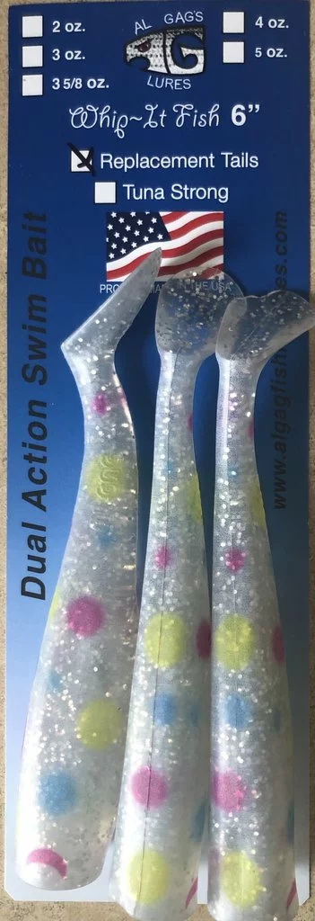 Al Gag’s latest invention, the Whip-It Fish is not your average soft-plastic swim bait, the dual action head and paddle-tailed style look so amazing under the water that fish can’t resist . These are made with premium hand poured molds which promote better swimming action. The Whip-It Fish come in four sizes in a variety of colors to work in any given condition.