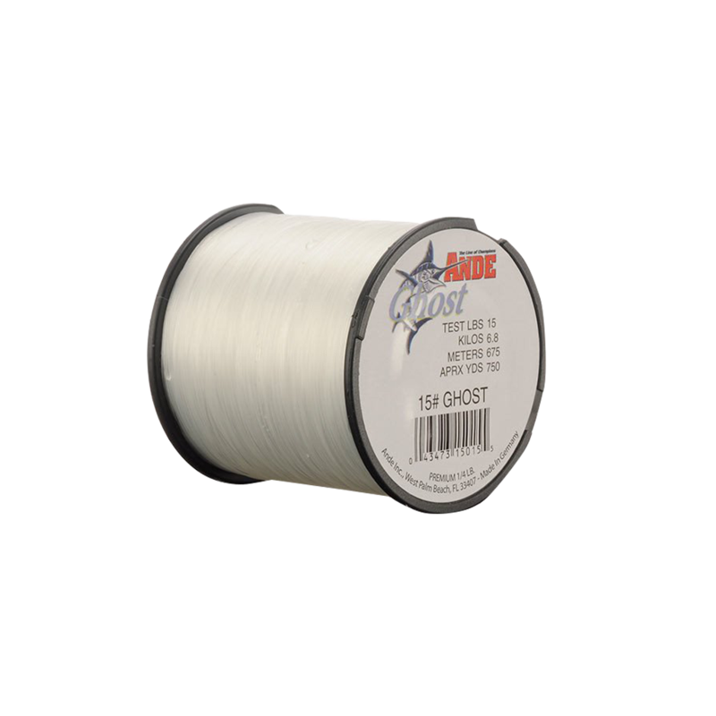 ANDE Ghost was engineered to the same exacting standards as all of our other products, but with a lower retail cost. Ghost will give the angler all of the characteristics that he is used to when fishing with ANDE Premium monofilament. It is available in a matte-white finish in 12 to 50 pound test. It is available in several different spool sizes.