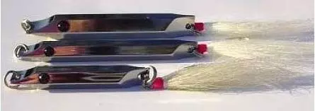 A one of a kind fish-catching design with superior casting ability. Featuring realistic 3-D eyes,durable chrome finish on a precision machined hexagonal solid brass body. Equipped with heavy duty stainless steel split rings and a single hook with fish attracting bucktail dressed hook. Designed to be cast and retrieved or jigged vertically.