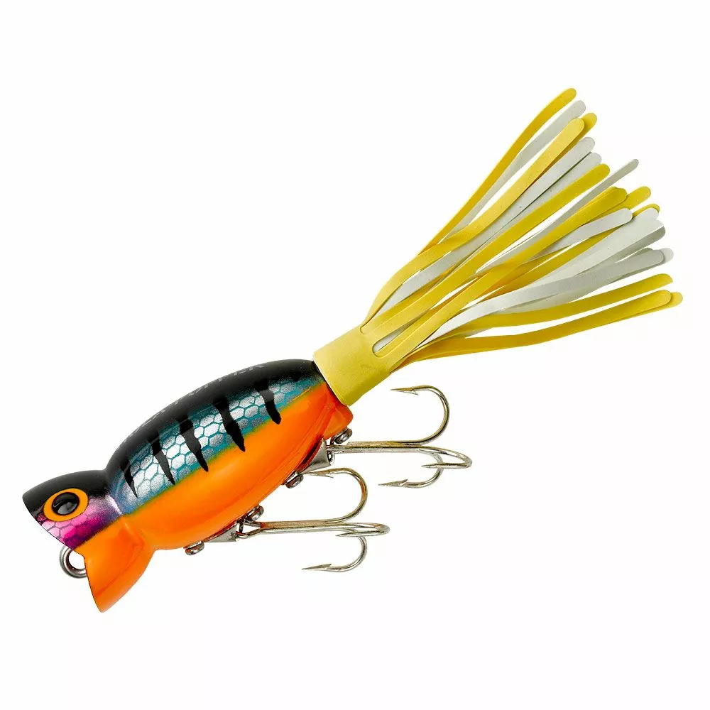 The legendary Arbogast Hula Popper is as deadly on bass, pike and other gamefish today as it was when it first hit the market more than 60 years ago. The Hula Popper’s pulsating skirt makes the difference – even during the pause it moves like something alive – for a killer action that results in vicious topwater strikes. The concave mouth of the Hula Popper produces big, loud “bloops” that gives every big fish within hearing distance a wake-up call they’ll never forget