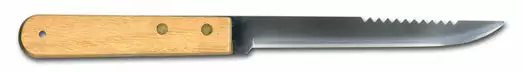 6.25″ Fillet Knife with stainless-steel blade and wooden handles. Features a saw on the top side of the blade.