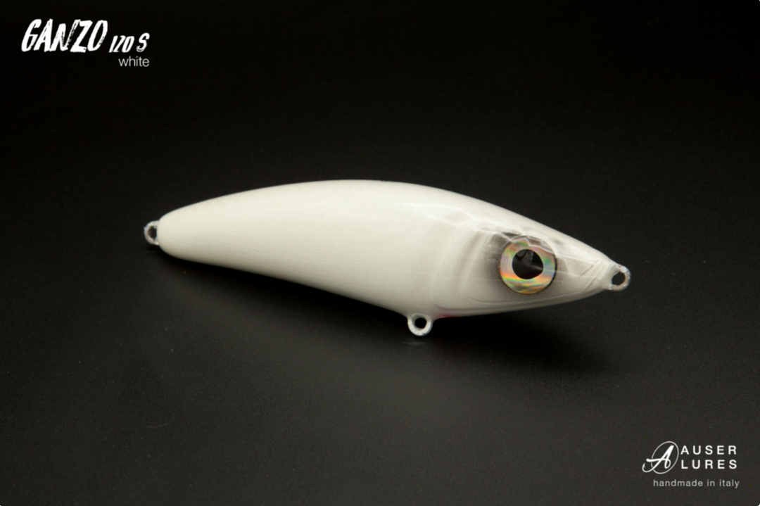Hand made in Italy. The Ganzo 120S is a small slow-sinking/suspending stickbait designed to catch tuna and many other pelagic species. It is very easy to swim and will suspend when paused often triggering a strike! This is a lower density version of the Ganzo 120S, which is fast sinking and has a distinct wobble when sinking on the pause