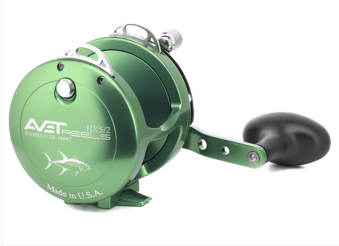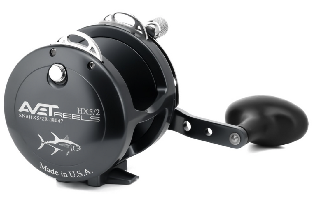 Avet Reels proudly produces aluminum lever drag reels right here in the USA. These reels are known for their usage on the west coast for casting on Long Range style fishing trips. This model is commonly known as the Hoo-X. Here in the Northeast, we like to use the HX 5/2 as a jigging reel for tunas, and other hard-fighting species. This is also a useful reel for white marlin and sailfish purposes.