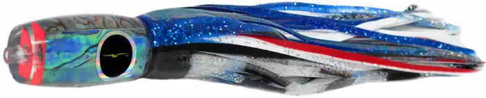 The scaled down flat faced version of Bart’s favorite lure. This is a deep runner with a smooth torpedo action trolled at any speed in all sea conditions. The 1656 Flat nose performs best with 300 lb leader attached to a 8/0 hookset. I love this little lure in a short rigger position, the perfect easy target for your spread.