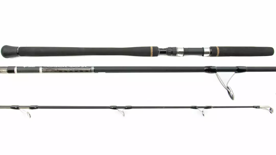 The Centaur Combat Arm “Inshore Game” Popping Rod is an excellent rod for school tunas, small to medium GT’s, roosterfish, and many other plug eating species. Depending on the model of choice, these pair up well with 6000-14000 size reels. These rods feature a high quality Toray Carbon blank which makes for the lightest and strongest rod in it’s class offered by Centaur. The blank is matte black, with some carbon fiber accents. This is truly a rod that is comfortable to cast plugs with all day long due to it’s light weight. All rods are 2 piece, with a hidden joint at the end of the foregrip.