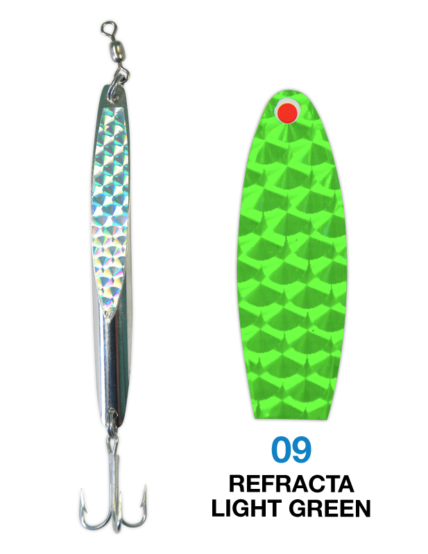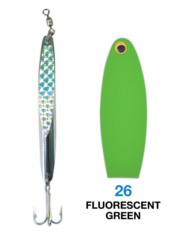The #4 long is just shy of 4 oz. and can be fished effectively at depths of 180-200 ft., providing currents are not too swift. When given slack line while jigging, they have a slow flutter action making them an easy target for feeding Chinook (King) salmon. Match the color and the size with the bait in your area and your Deadly Dick will work miracles for you!