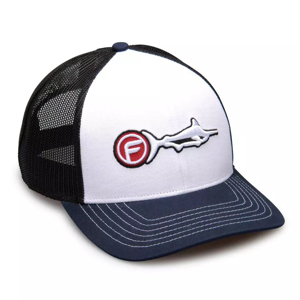 Mesh back trucker cap featuring a 3D Lure Eye “F” logo embroidery.