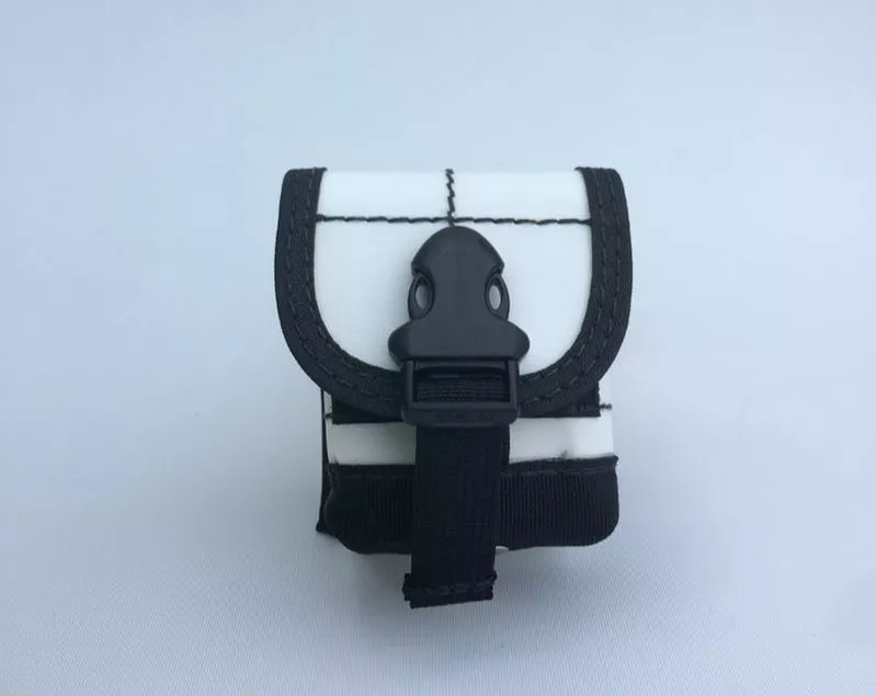 Gear-Up’s Pork Rind / Jar Holder is made out of Dacron Sailcloth material. It consists of 2 layers of Dacron Sailcloth. It can hold the following: (1qty) Otter Tail 6 ½”x 5/8” Jar, (2qty) Otter Tail 5”x 1/2” Jar; stacked on top of each other, (1qty) Uncle Josh Jar & (1qty) Fat Cow Fishing Jig Strips (All Sizes). It can also be used to hold a GoPro action camera in its waterproof casing.