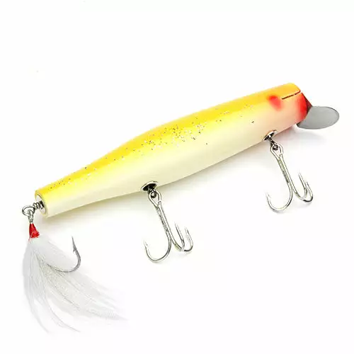 The outstanding ability of this plug to attract big fish is due to the unique swimming action it creates. Unlike minnow type plugs that swim from the nose, the Danny pivots from a fulcrum in the center of its body.