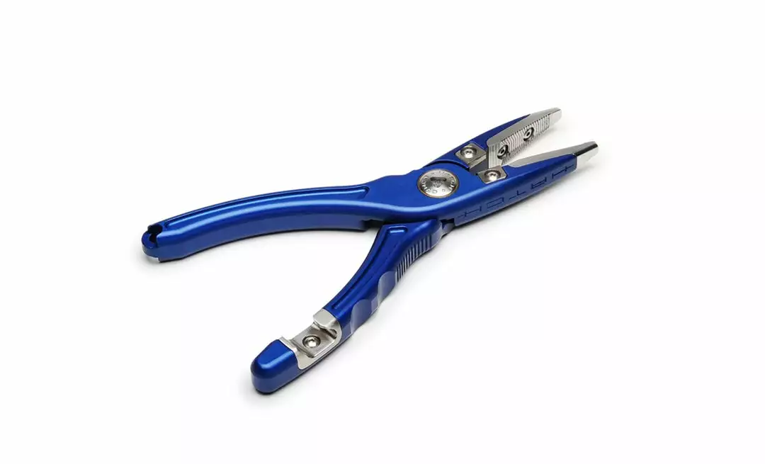 This is the ultimate pair of pliers for any fly or conventional angler. The I-Beam arms are crafted from 6061-T6 Aluminum and protected with Type II anodize. The cutters are made from Tungsten Carbide for abrasion resistance and reliable cuts through all fishing line material. The jaws are machined from 17-4 stainless steel made for ultimate corrosion resistance. Black bungee lanyard, and leather sheath included!