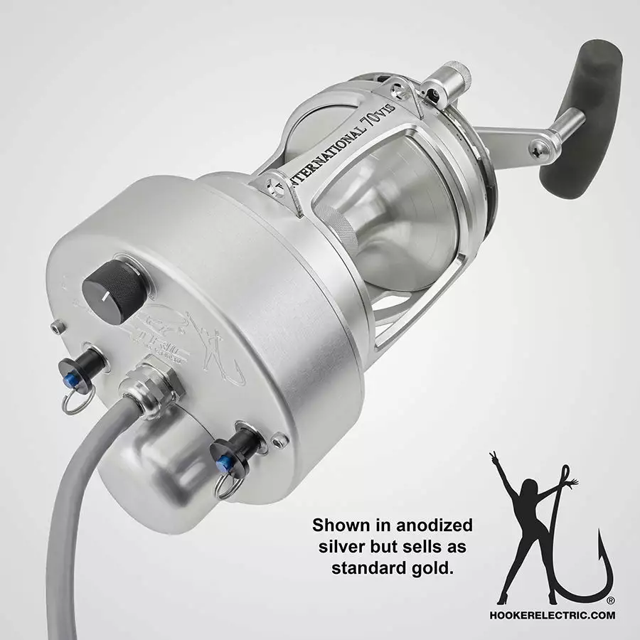 Combo: Hooker Electric drive and components installed on a brand new Penn reel.