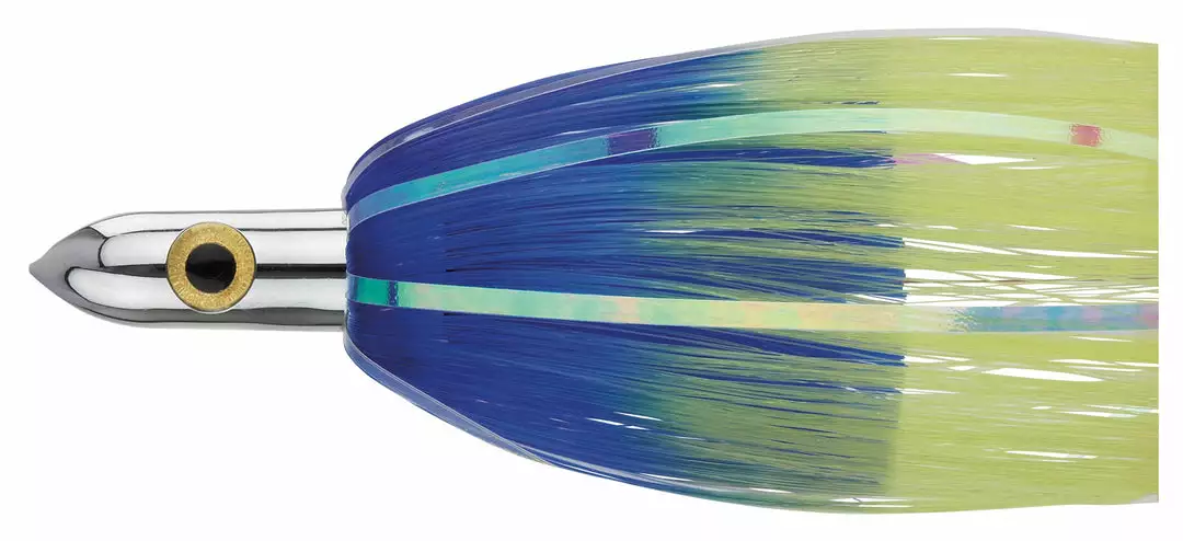 Ilander Flasher Series IL-400F lures feature a nylon skirt with a prism mylar outer shell, adding increased visibility and realism. One of the finest all-purpose offshore trolling lures made today. World renowned among tournament fishermen as a “fish producer”. Ideal for Marlin, Sailfish, Wahoo, Tuna, Dolphin and King Mackerel. Features a weighted bullet head for high trolling speeds. Commonly rigged with a large or Horse Ballyhoo and trolled 6 to 8-1/2 knots.