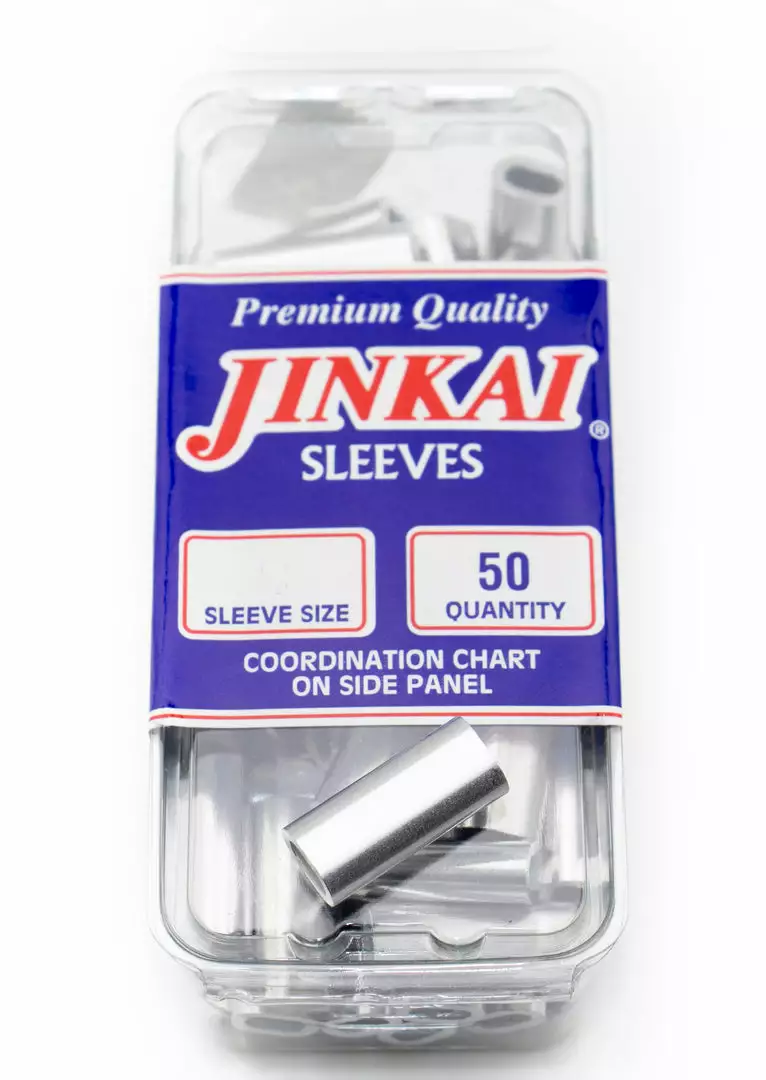 Jinkai crimp sleeves are made from a corrosion resistant aluminum alloy. These crimps are known for their strength, available in sizes to accomadate many different line diameters and crimping styles.