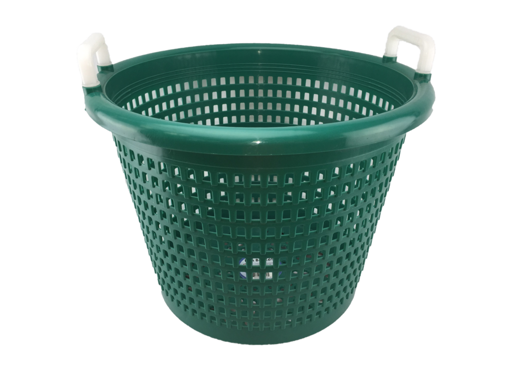 These fish baskets (aka. Shrimp baskets) are constructed from heavy duty plastic. They are meant for commercial fishing purposes, and they also make excellent baskets to keep harpoon line and a poly ball for big game fishing. These baskets are useful for storing and transporting fish, shrimp, scallops, clams, crabs, and just about anything else that you could think of!