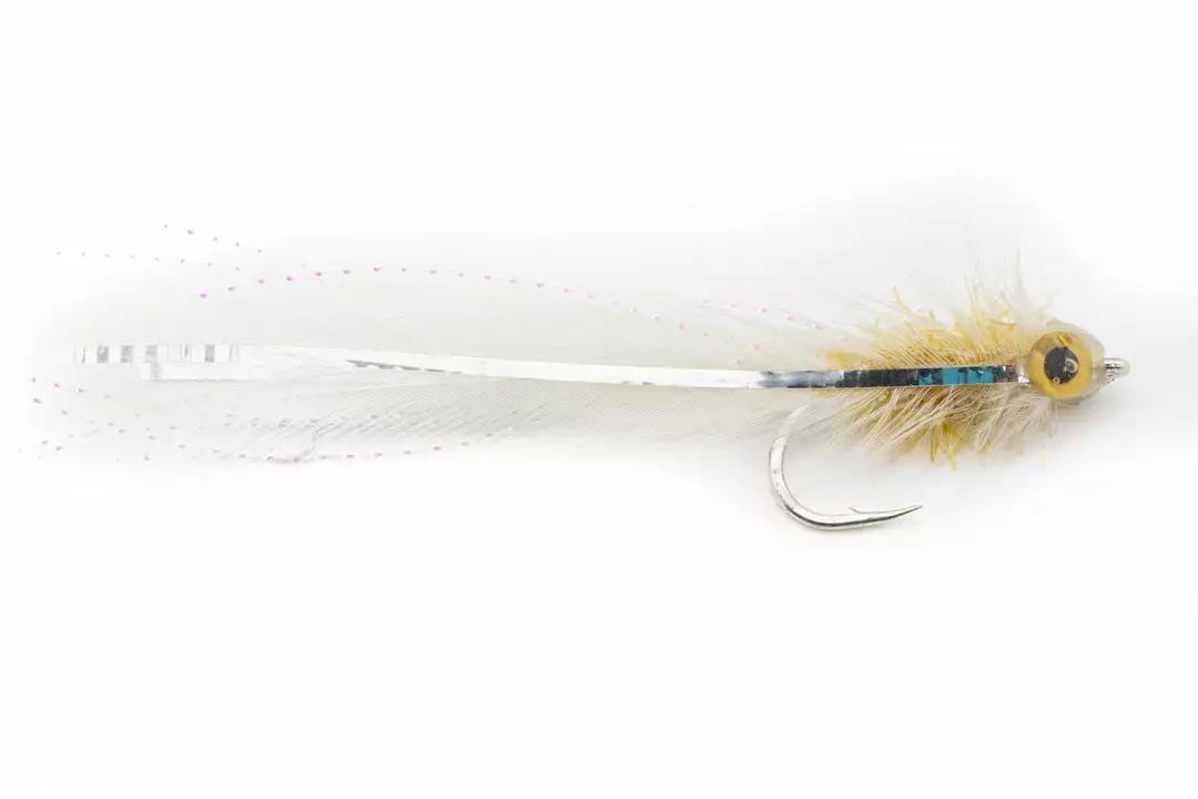 Tied by Mike “LI Flies” Ozkaya, right here on Long Island, NY. The “Albie Whore” is a fly designed by Richard Reagan. As the name implies, this is an excellent fly for False Albacore, however it also works great for stripers, bluefish, and many other species. Sometimes, having a fly that stands out from the massive concentrations of bay anchovies and spearing is a great way to get an albie to eat during blitz, and that’s what this fly does very well. Tied on a strong 1/0 Mustad C70SD hook.