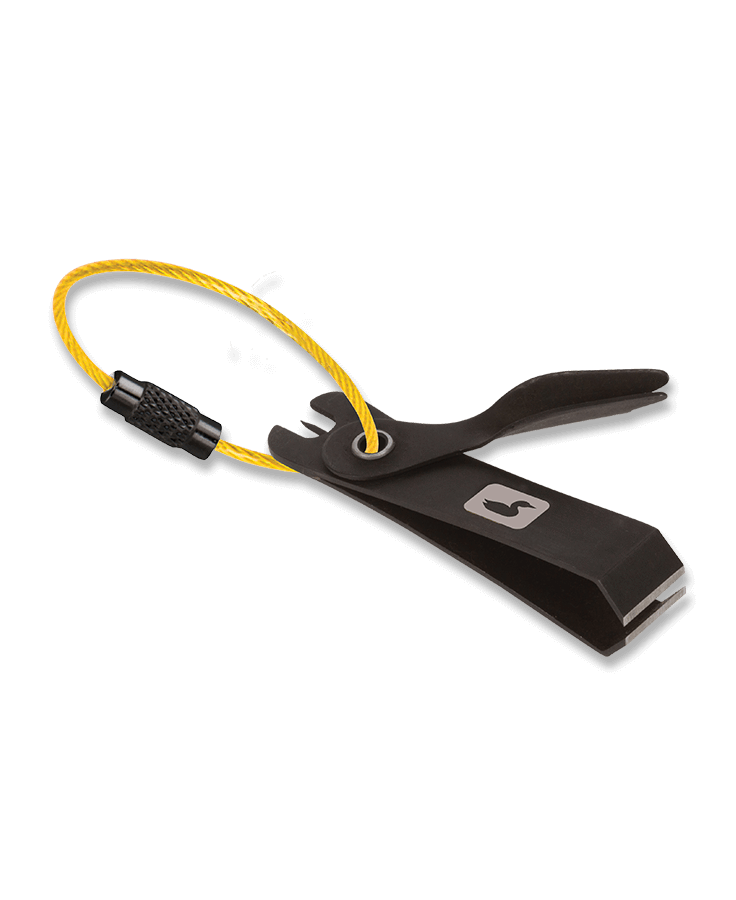 The all-in-one nippers. Stainless steel cutting jaws, knot tool, hook clearing needle, and chain attachment.