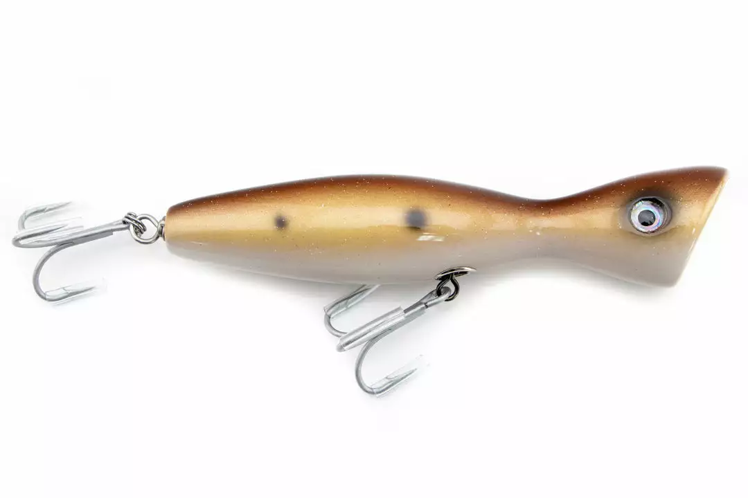 Afterhours custom plugs are hand-crafted by Don Guimelli in Rhode Island. The finish work, and fishability of his hand made wooden lures are second-to-none. We are the exclusive dealer in New York state for these beautiful custom plugs. These are Don’s 6″ Polaris Poppers, they weigh in at around 2.5oz. Very good casting plug that spits as much water as any Polaris you’ve ever used.