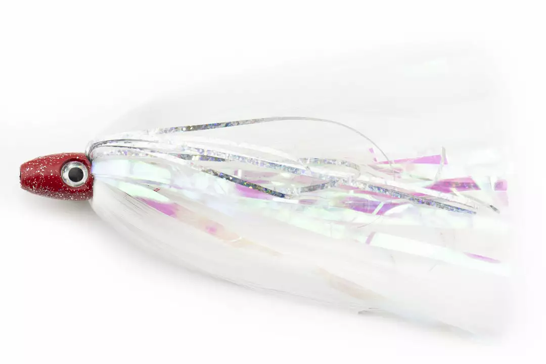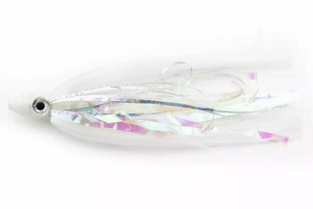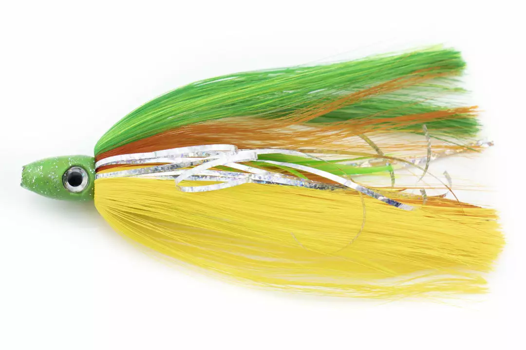 The 2oz Tuna Flare is an excellent choice for a skirt over your ballyhoo when you are trolling for tuna, mahi, and other pelagic species. The Fish DownSea Tuna Flare easily allows up to 400# leader to pass through it. The eyes are key for predators to hone in on their prey and the eyes on the tuna flares our eyes stand out to help get that bite! They are weighted just right with the 2 ounce lead heads allowing them to have a skip and swim action that tuna and other pelagics can’t resist. Measures out at 7.5 inches long.