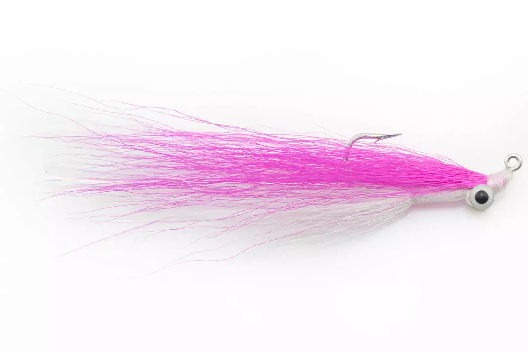 Tied by Mike “LI Flies” Ozkaya, right here on Long Island, NY. Invented by Bob Clouser, these are another staple pattern for Northeast saltwater fly fishing. This is another “catch all” type of fly. Works well for striped bass, bluefish, and really just about any saltwater fish that swims. These feature weighted eyes, to help get the fly down a little deeper in the water column, and they are tied on a jig hook.