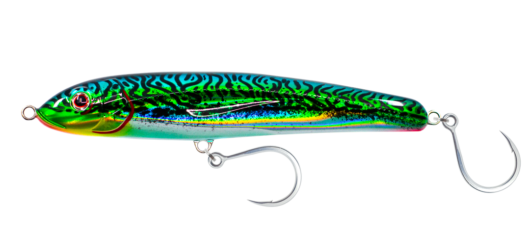 Riptide 105 Long Cast Stickbait. 4″ and 1.5oz. Gorilla Through Wire system for Ultimate Strength and fitted with super strong inline single hooks. When bluefins are keyed in on small sandeels and other small profile baits, this is an excellent choice. Ideal when casting for Tuna, Striped Bass and Yellowtail.Â