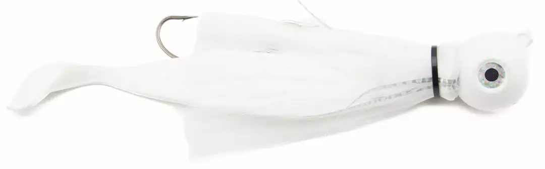 The hottest bass trolling lure to hit the market in years. Designed to target larger bass, in deeper water. Can be trolled on mono, braid, leadcore , or wire depending on the condition. Often used in tandem or combined with a plug, spoon or other via a 3-way swivel rig. Comes standard with a pair of ultra strong mustad hooks and 9″ shad body (except 2 and 4 oz that are single hooks and 6″ shad) and reflective tape down the lateral line for a small amount of added flash.