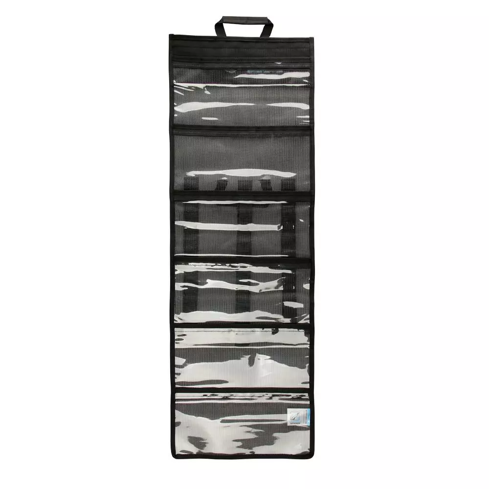 Keep your lures organized in one place! These mesh bags have 6 pockets, they have clear faces, with heavy-gauge polished vinyl, and hook and loop closures. This also has two sewn-in handles for easy carrying, and custom embroidered with our logo! We offer these bags in three different sizes for everything from small tuna/mahi lures, to heavy tackle marlin lures.