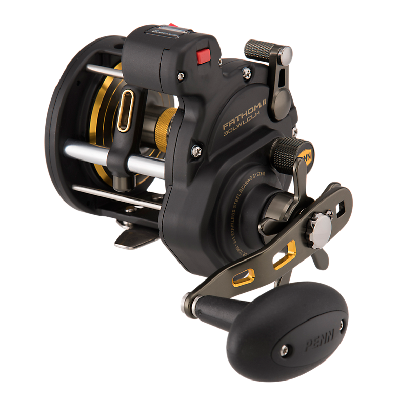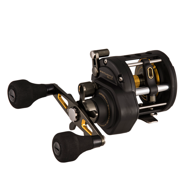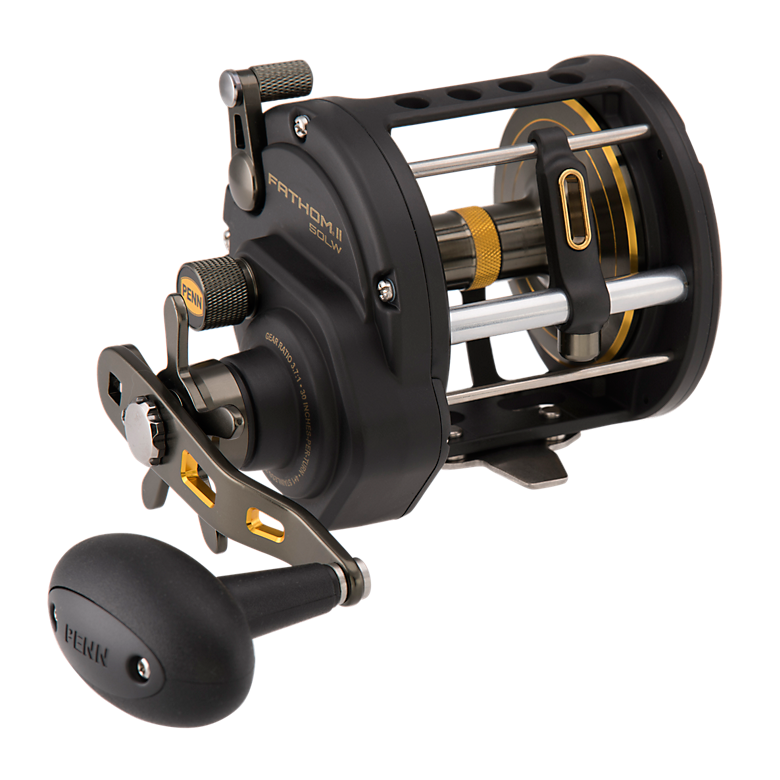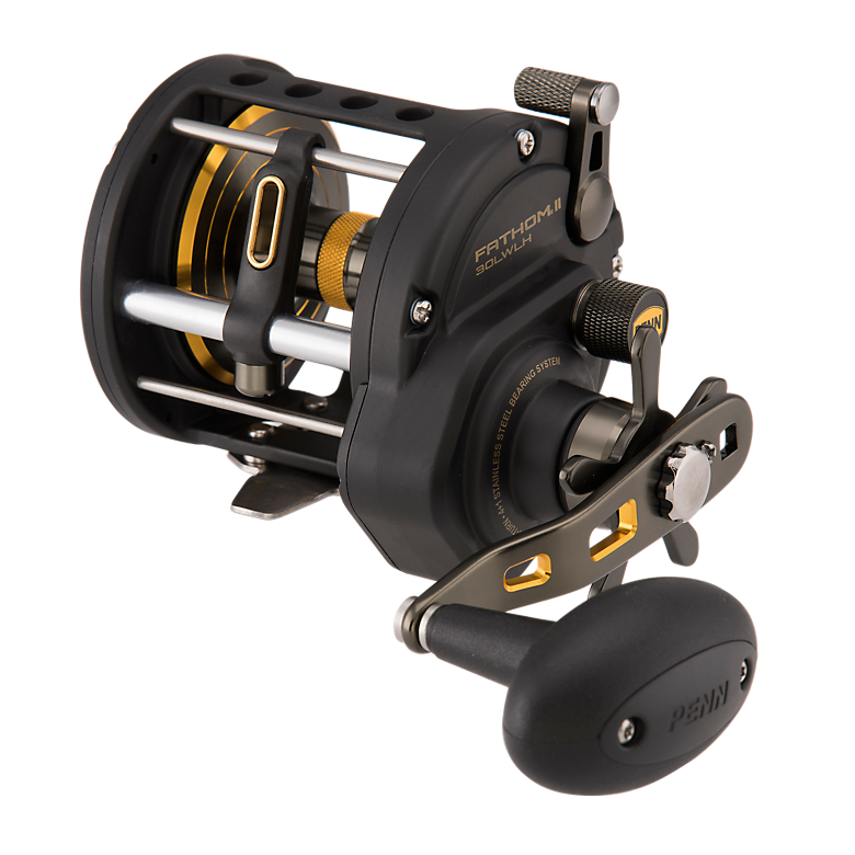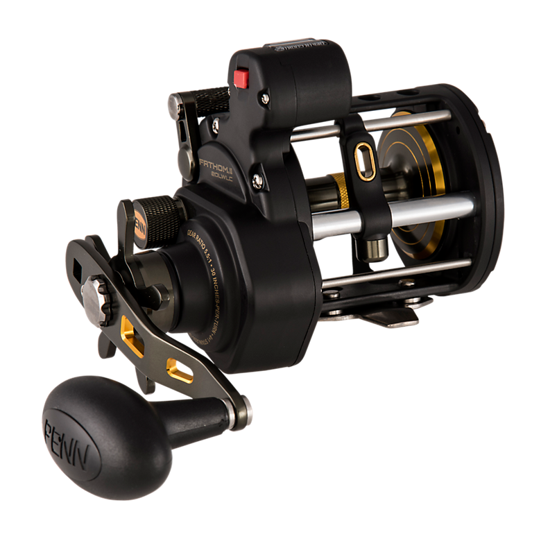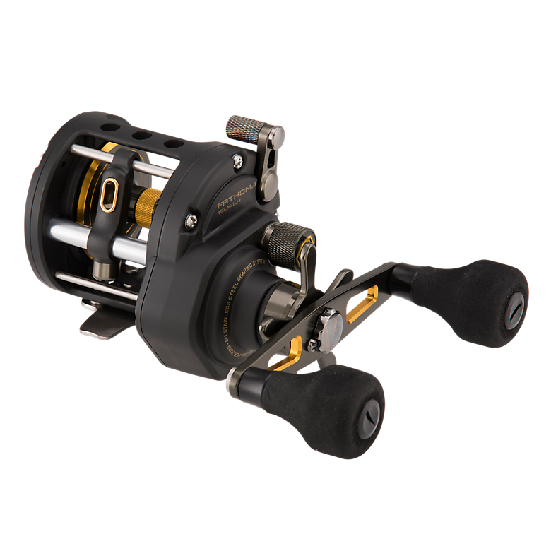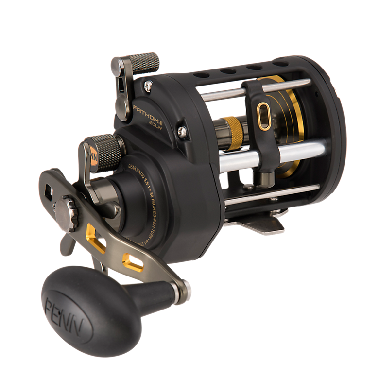 The PENN Fathom II Level Wind’s heavy duty construction and powerful gears make it a true workhorse and favorite of charter boat Captains. It is designed to handle extreme abuse day-in and day-out. Whether you are bottom-fishing or casting live bait, the Fathom II will stand up to the hardest fishing conditions. A Full Metal Body keeps precise gear alignment while the Fast Gear Access Sideplate allows for easy maintenance. The Fathom II also houses our powerful HT-100 drag system to stop any fish that bites. Available in standard, line counter and left hand models