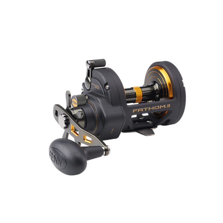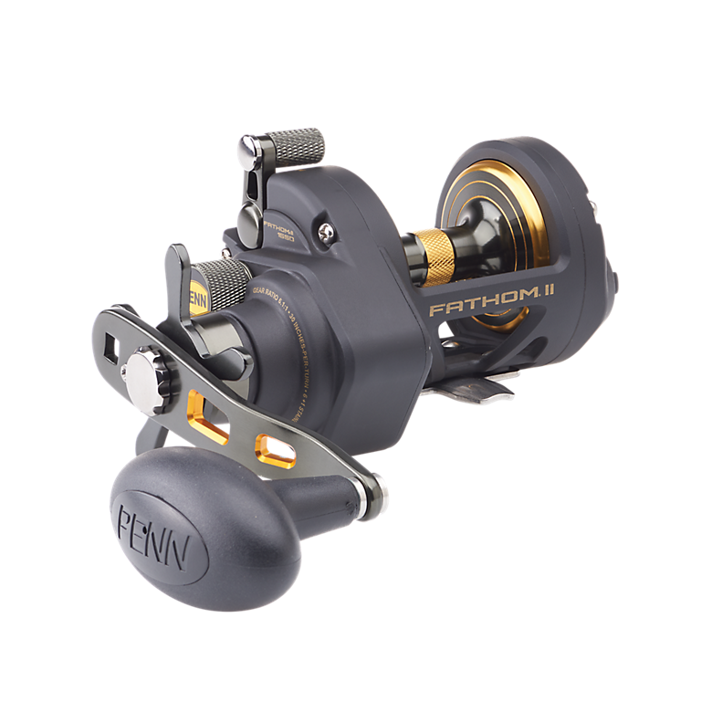 The second generation PENN® Fathom® II star drag reel is built with a rigid metal frame and sideplates, now with added features to make it more angler friendly than ever. Featuring our fast gear access sideplate, any angler can service their gears and HT-100™ drag system quickly and efficiently. The PENN live spindle design offers long, effortless casts, while the power gear ratios (select models only) give ultimate torque for winching up deep fish. Magnetic casting brake available on 12 and 15 sizes only.