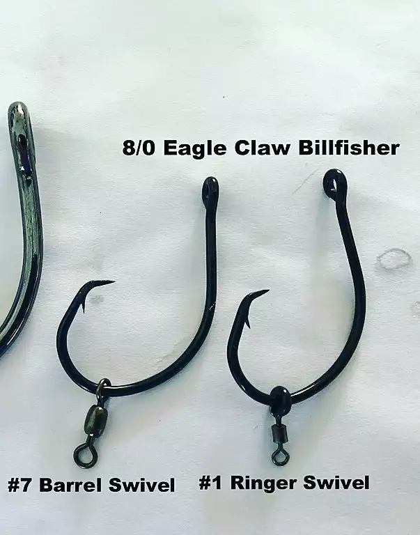 Size 3 Ringer Swivels™ are commonly rigged with large pitch baits: mackerel/bonita/horse ballyhoo. This swivel is our largest and is sized to accept big circle hooks, 12/0+. Tease em>Pitch em>Switch em.