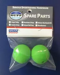 Package of two custom nylon outrigger ball stops. More durable then cork. Center hole accepts either mono-filament or nylon halyard lines up to 1/8″ in diameter. Choose from red, green or black.