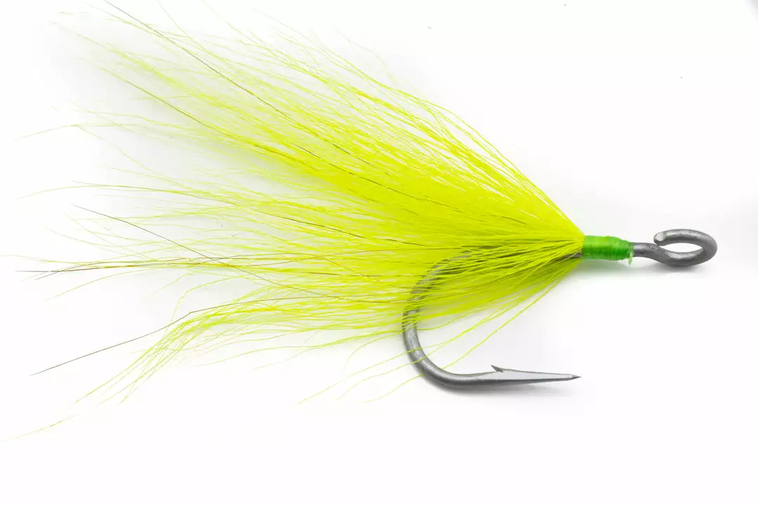 These replacement hooks are perfect for adding a little extra action to your plugs and tins. We offer these in sizes 2/0 – 6/0, in 6 different colors so you can match them up to your lures! These are tied with bucktail on VMC Open-Eye Siwash Hooks.