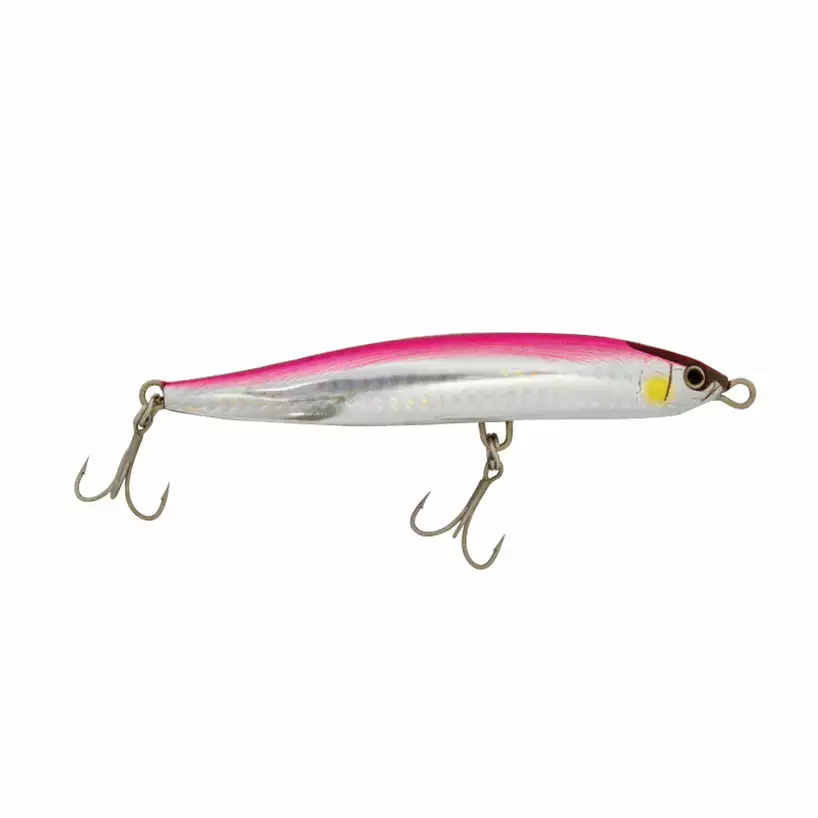 Formerly known as the Coltsniper. Featuring a sand eel-like slim shape design, Shimano’s Current Sniper sinking stickbaits offer exceptional casting distance from Shimano’s unique Propulsion Weight Transfer System. By allowing the internal weight to slide back during the cast, and then spring forward when the lure hits the water, anglers will notice casting distance increasing by up to 22-percent over similar weight and length lures. Ideal for chasing a variety of species from calico bass and stripers, the slow-sinking Current Sniper stickbaits have a wide slide swim action when retrieved. They feature chemical finish treble hooks mid-body and tail.