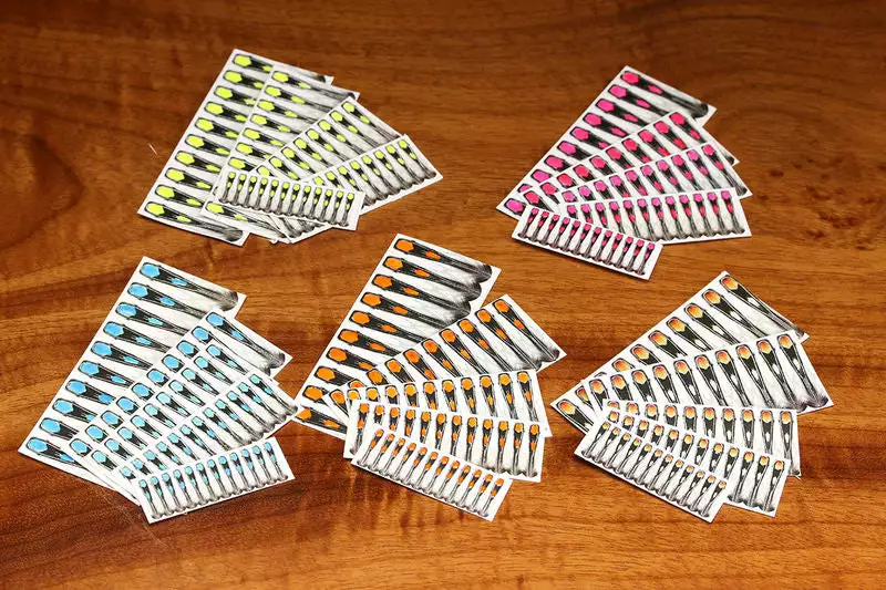 This is a less expensive alternative to using real jungle cock feathers on your flies. These packs come with 5 different sizes, and 1 dozen eyes of each size. We sell these in Orange.