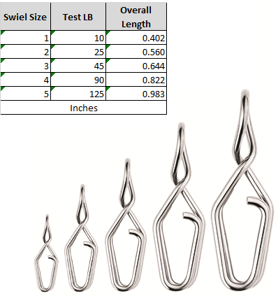 These “paper clip” style snaps are easy to use, and very strong for lure fishing applications. Ideal for surfcasting, plugging from the boat, and even big game applications in the largest size, they make changing out your lures a breeze!