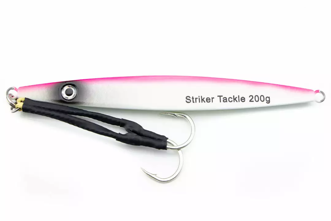 These jigs from striker tackle feature a flat side and a rounded side. These are great for speed jigging for tuna, grouper, amberjack, snappers, trevally, and many other species.