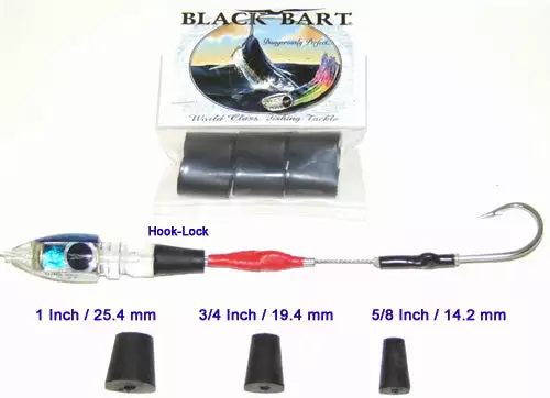 Just pull your crimp into our hook lock, turn your hook into the up position and your ready to go! Funny how the little rigging tricks can make your fishing day a big success. Retrofit all your lures with what has been a Black Bart standard for years. If your still using toothpicks to lock your hooks in place try our Bart Hook Locks.