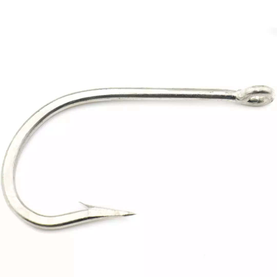 This classic “J” shaped hook is mainly used for trolling skirted lures, such as Kona Heads either with a single hook or rigged as a tandem/double rig. This is an excellent hook for rigging ballyhoo as well. The forged hook provides extreme power and strength. The knife-edge point ensures solid hookups. It is the perfect option when targeting big game species such as Tuna, Marlin, Sailfish, Wahoo and other fast swimmers. Duratin finish for optimal corrosion resistance. Chemically sharpened, Nor-Tempered high carbon steel.