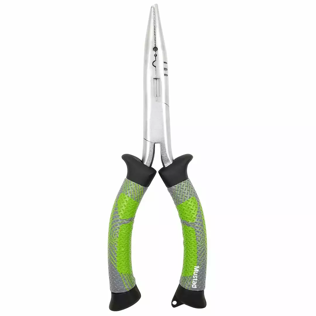 Our Large 9” Split Ring Pliers feature a split ring opener, wire cutter and a crimper designed for lead and sleeves. The pearl nickel finish on top of the grad 420 stainless steel give the pliers the corrosion resistance expected by anglers. Safety and comfort are important when rigging, so the handles have been designed with non-slip grip and lockable functionality.