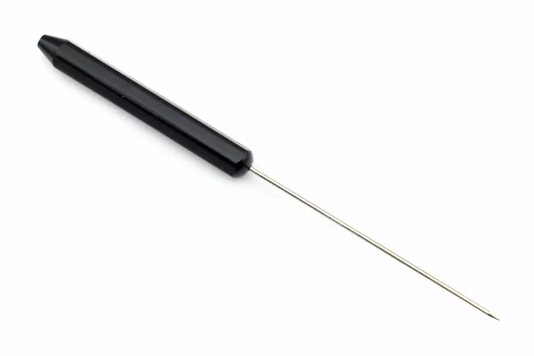 Bodkins are a multi-purpose tool for fly tying. They are excellent for applying head cement and glue, and for picking through fibers. This one also features a half-hitch tool on the back end of it!