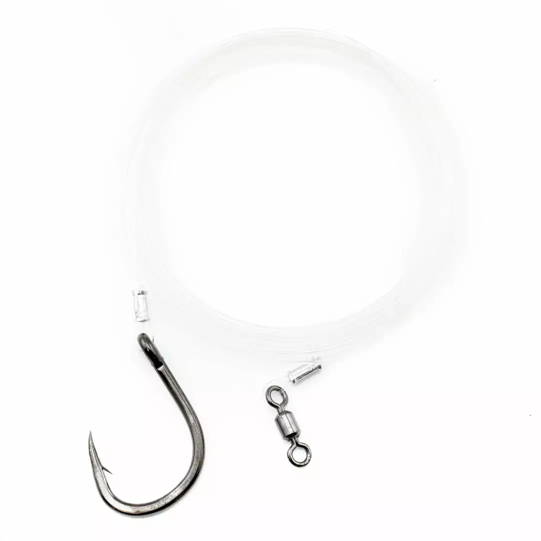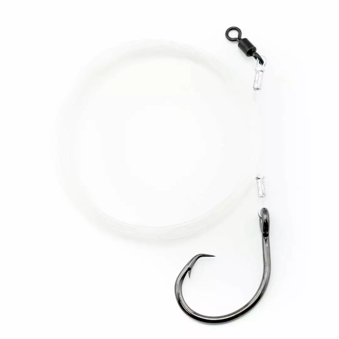 Our custom offshore rigging is the best in the business. Offered in both J-Hook, and Circle Hook varieties, these tuna chunking rigs are the same ones that we put to use ourselves. All of our tuna chunking rigs are made on 8 feet of Seaguar fluorocarbon, crimped on both ends, with a SPRO barrel swivel at the top which can be wound through the guides on a properly equipped rod with Aftco Wind-On or Winthrop rollers. This rig is perfect for chunking yellowfins, bluefins, and mahi-mahi. Tie one on, and start chunkin’ away!