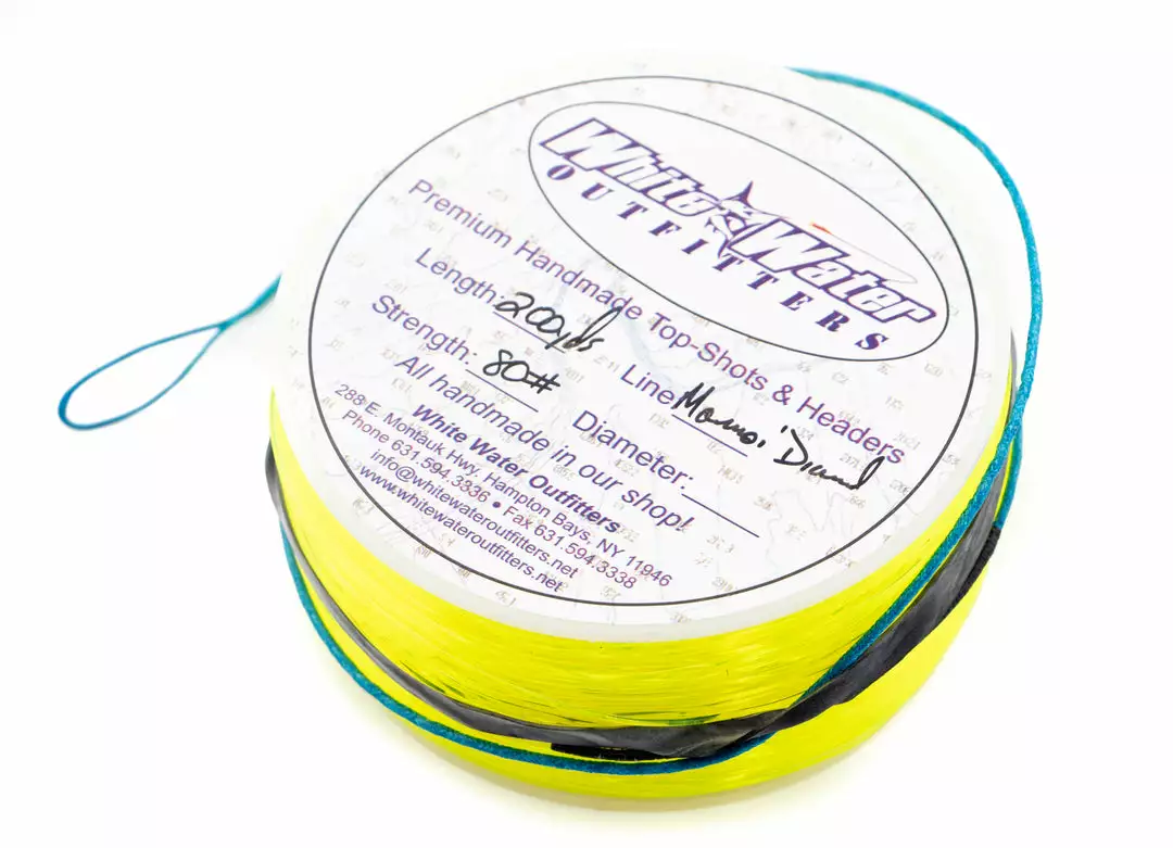 Our custom offshore rigging is the best in the business. The “top shot” is a section of monofilament that is meant to attach to the end of your braid backing as the mono section of main line. We construct these from Momoi Diamond monofilament, in a variety of lengths, and strengths to suit your needs. They have a looped header at the end made from hollow core braid to make attaching it quick and east. These are great to keep on the boat, in case you need to quickly change out your line to get back in the water when the bite is on. Attaching it is simple, form a loop at the end of your braid by either splicing, or tying a bimini twist, then do a loop-to-loop connection on the pre-formed looped header of the topshot to form a “cats paw” when passed through three times. Reel it on under tension, and you’re done!