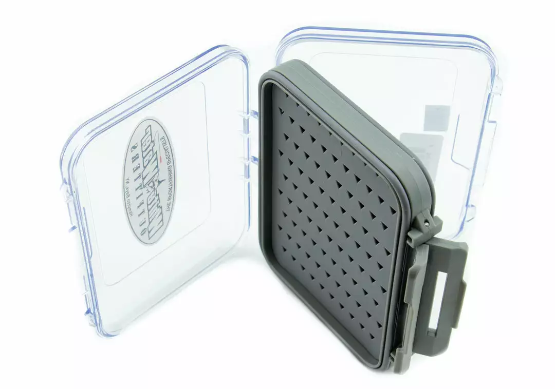 These waterproof fly boxes feature a Silicone rubber insert material with offset slits that hold flies firmly and maximize usable space. This box can hold the smallest of hooks with no issue, as well as larger streamer hooks. The slot sizes in this box are great for all freshwater flies, and smaller saltwater flies. Nobody likes finding an open fly box and flies all over your pack when you need them. To prevent that, these have strong latches to assure that your box stays closed until you need to open it. Currently available in a Small and Medium size.