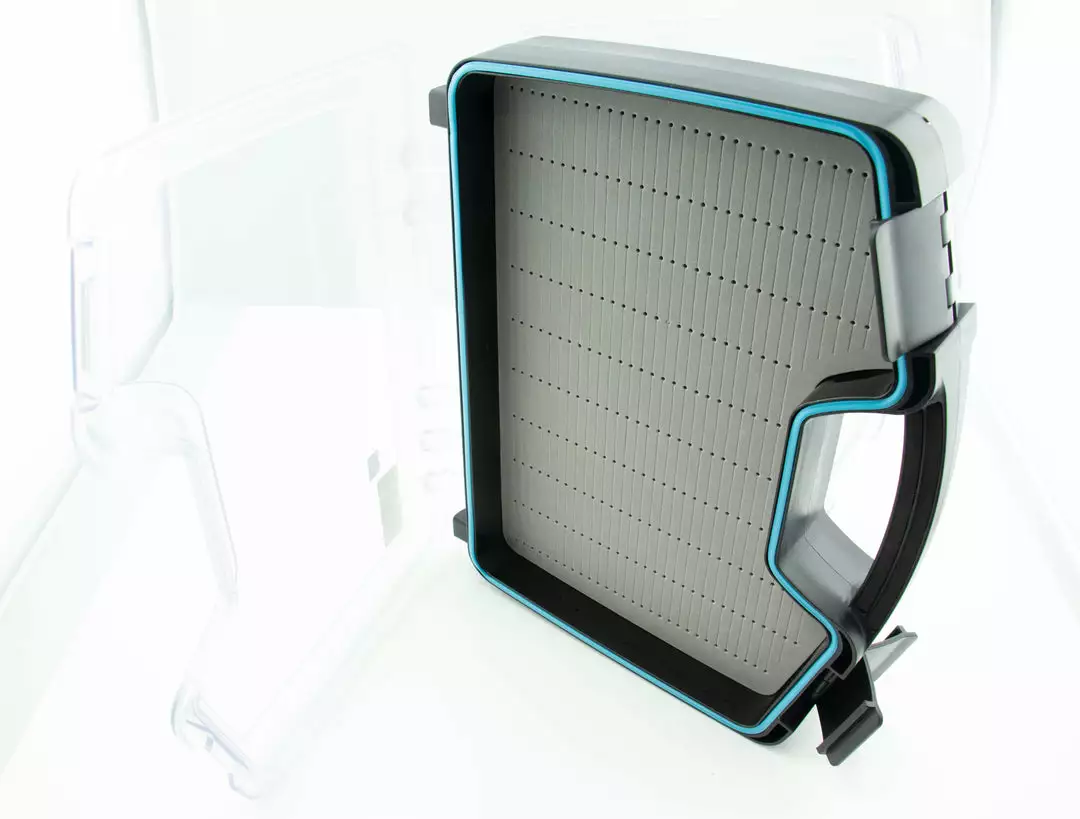 This beast of a fly box is meant to hold saltwater flies and large streamers. When you really need to get a handle on your fly storage, this is the best choice. This double-sided box features foam slit inserts, meant to hold saltwater flies and large streamers. One side of the box is about 2 inches deep, for those really big streamers & poppers, the other is about 1″ deep for the more normal sized saltwater stuff. These boxes are great for keeping on the boat, with the waterproof gaskets, they won’t get wet, and the strong plastic and latches can take the abuse of being bounced around.